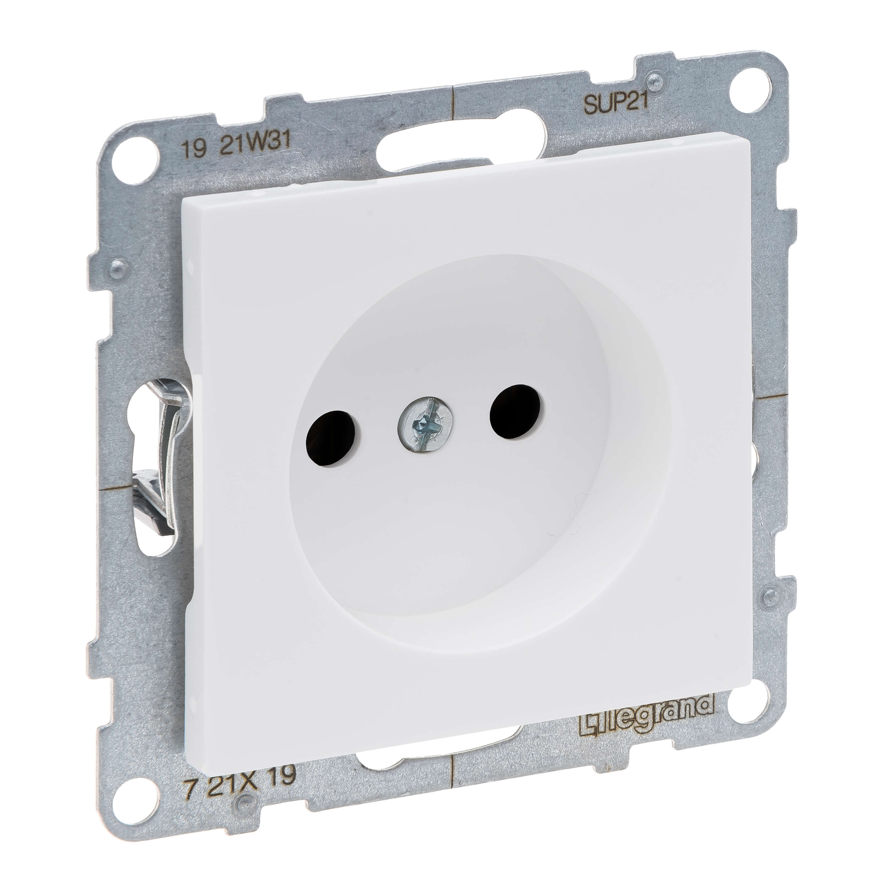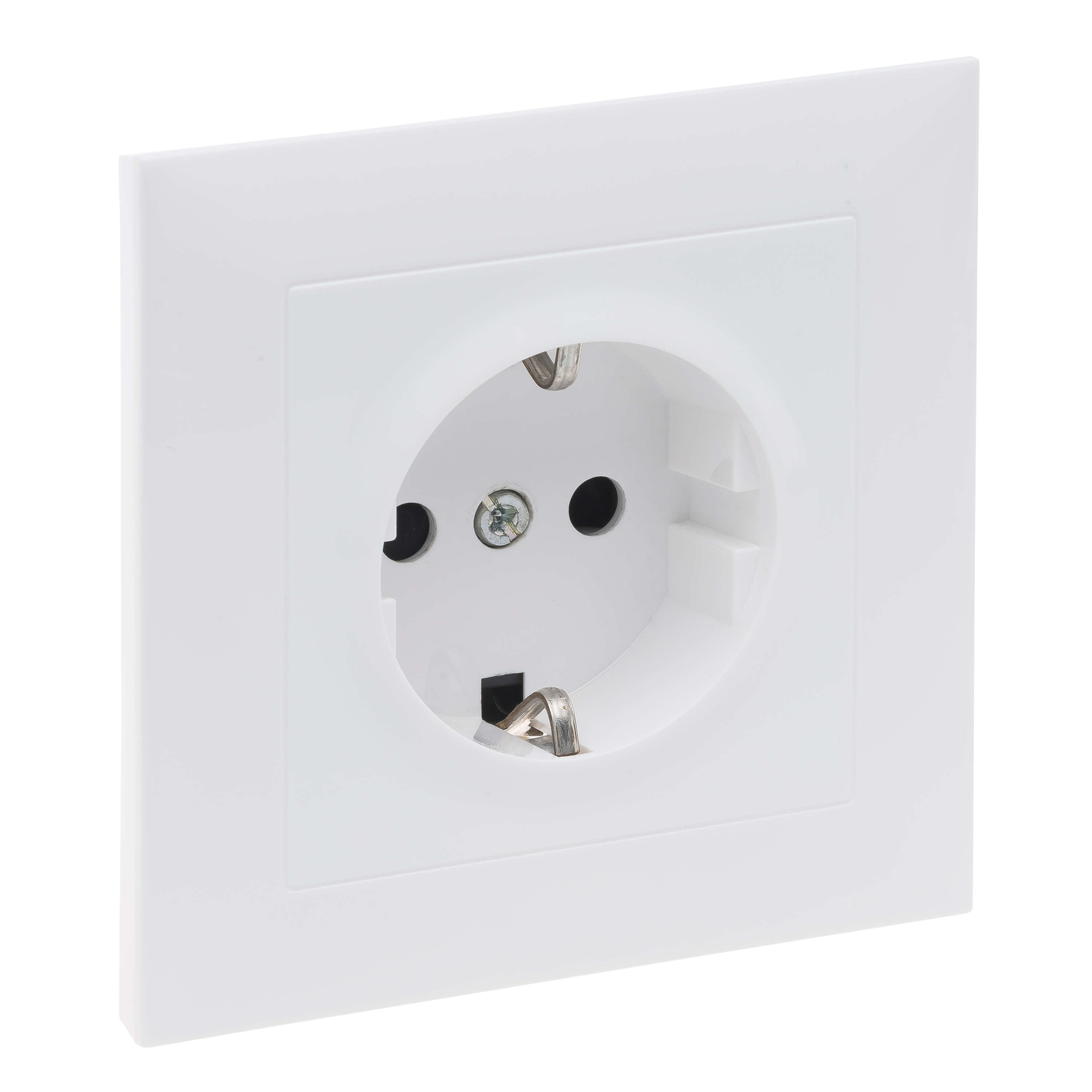 Tomada 2P+T Schuko, monobloco, ligadores parafusos, Branco