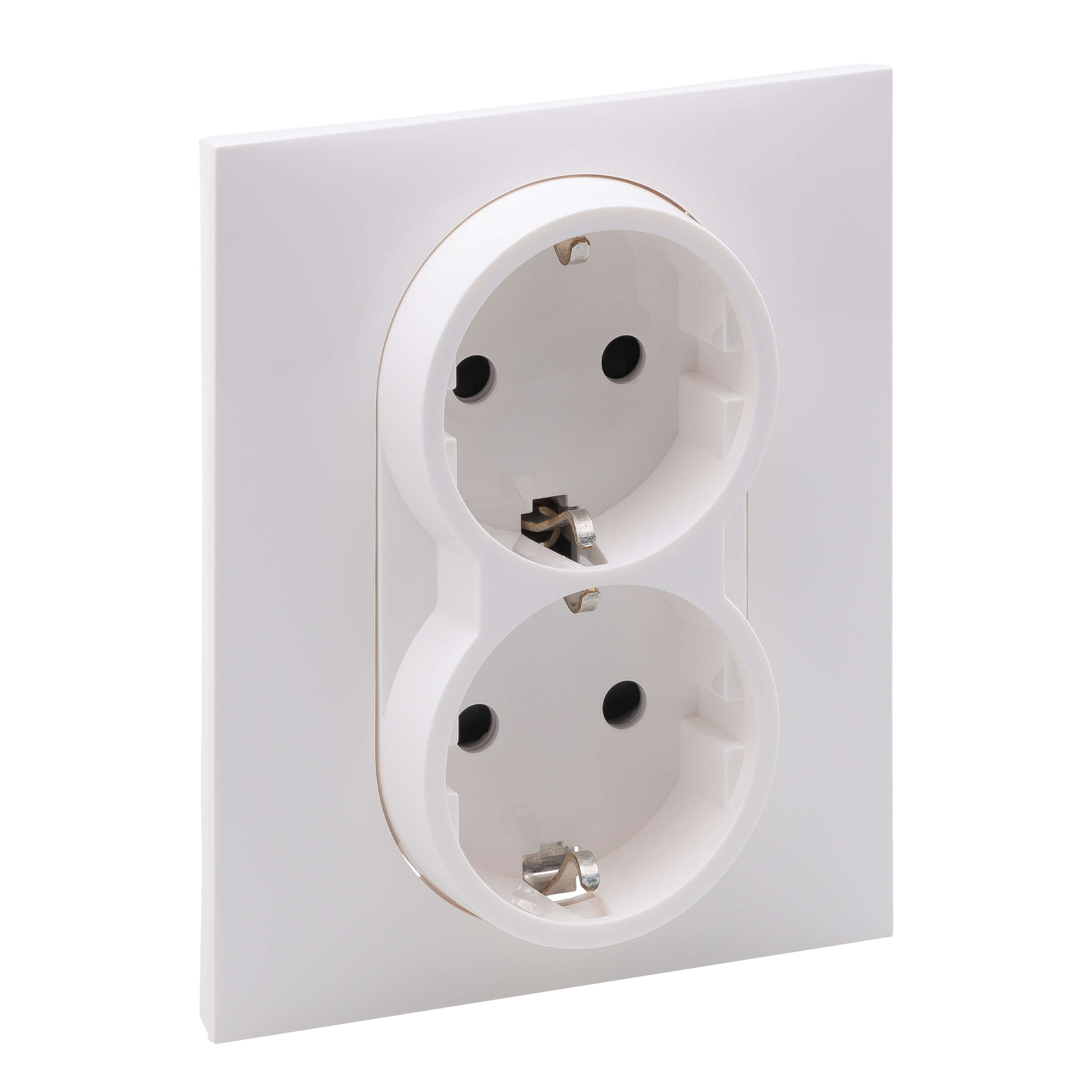 Tomada dupla 2P+T Schuko, ligadores automáticos, Branco