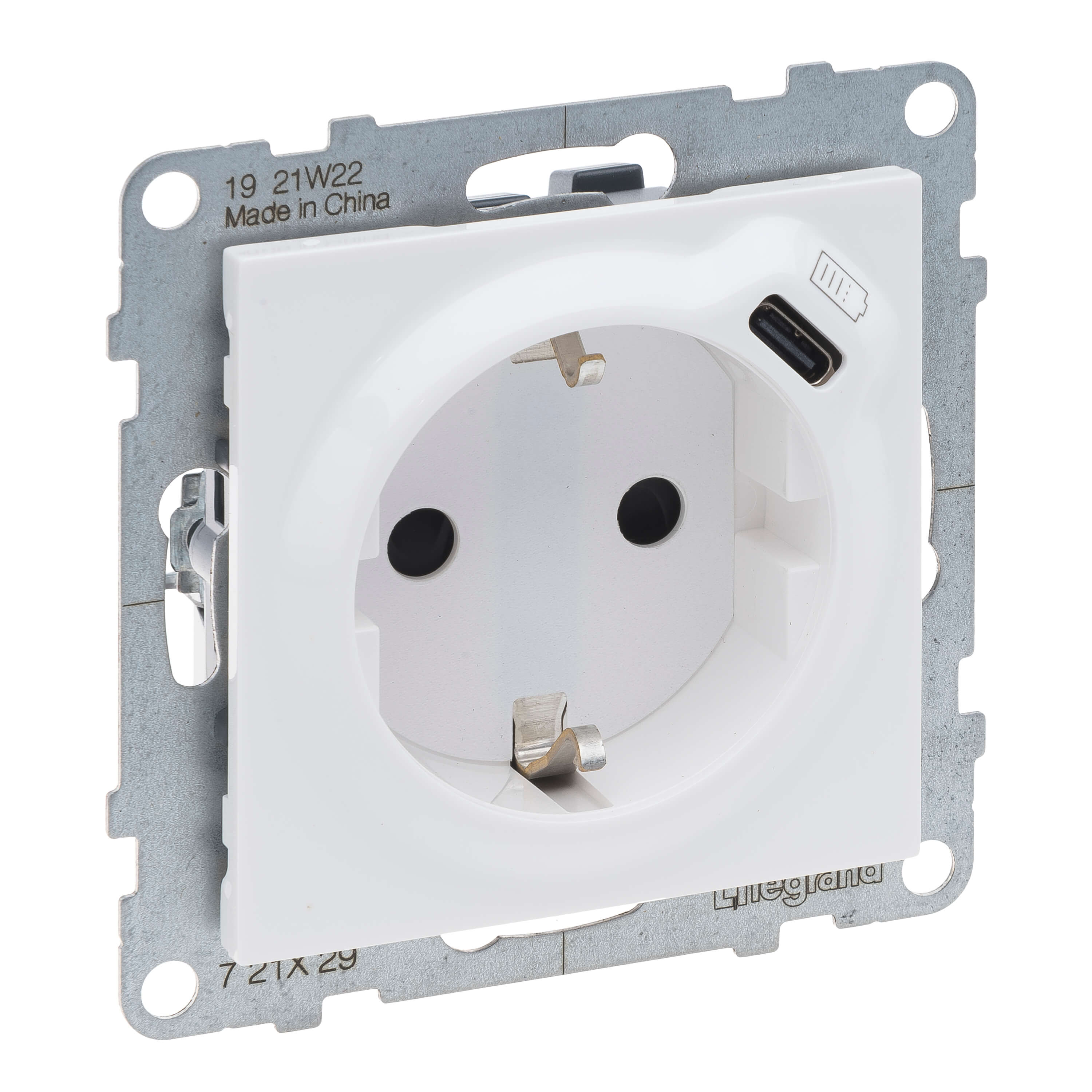 Tomada mista: 2P+T Schuko + USB Tipo-C, Branco