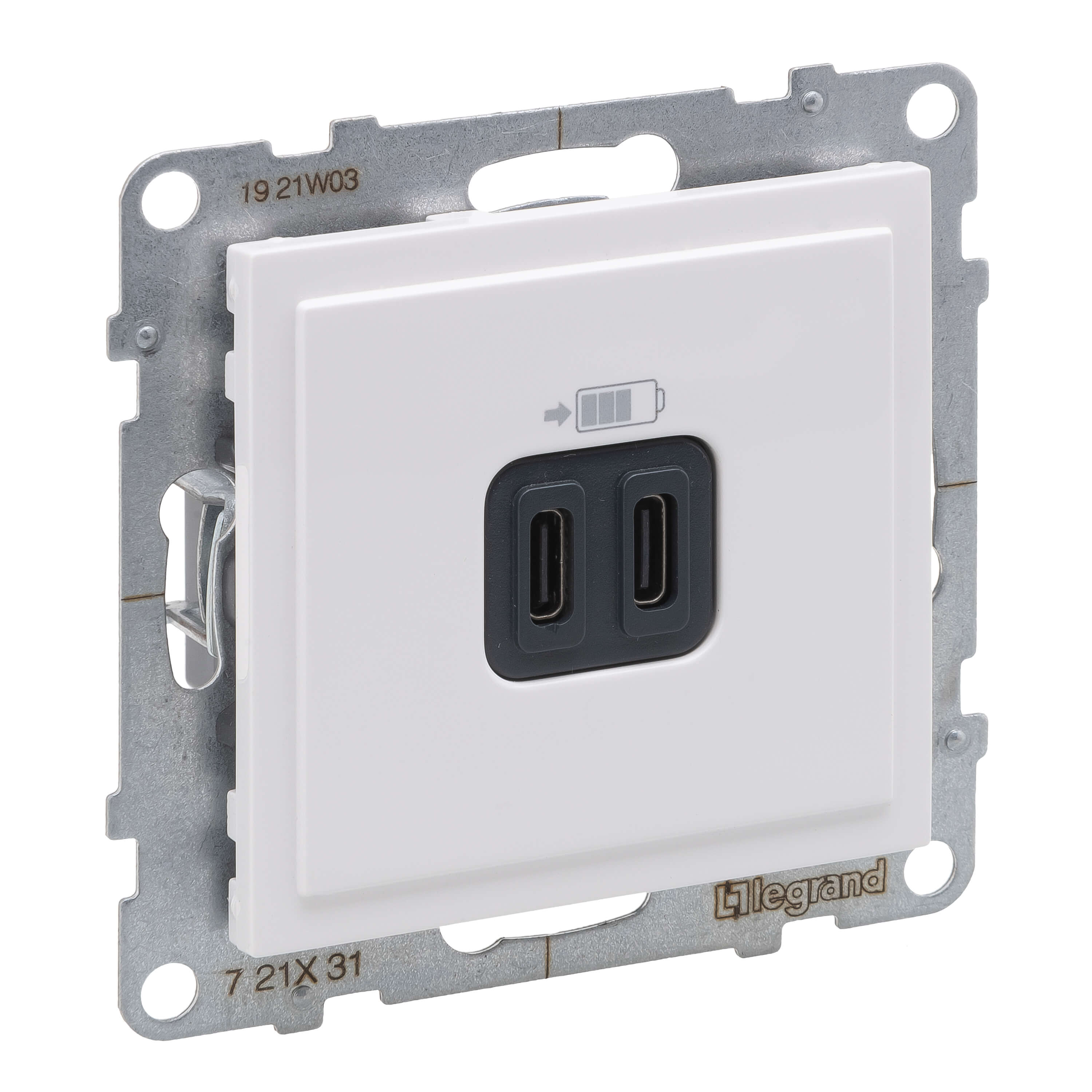 Tomada dupla USB: 2 x Tipo-C, Branco