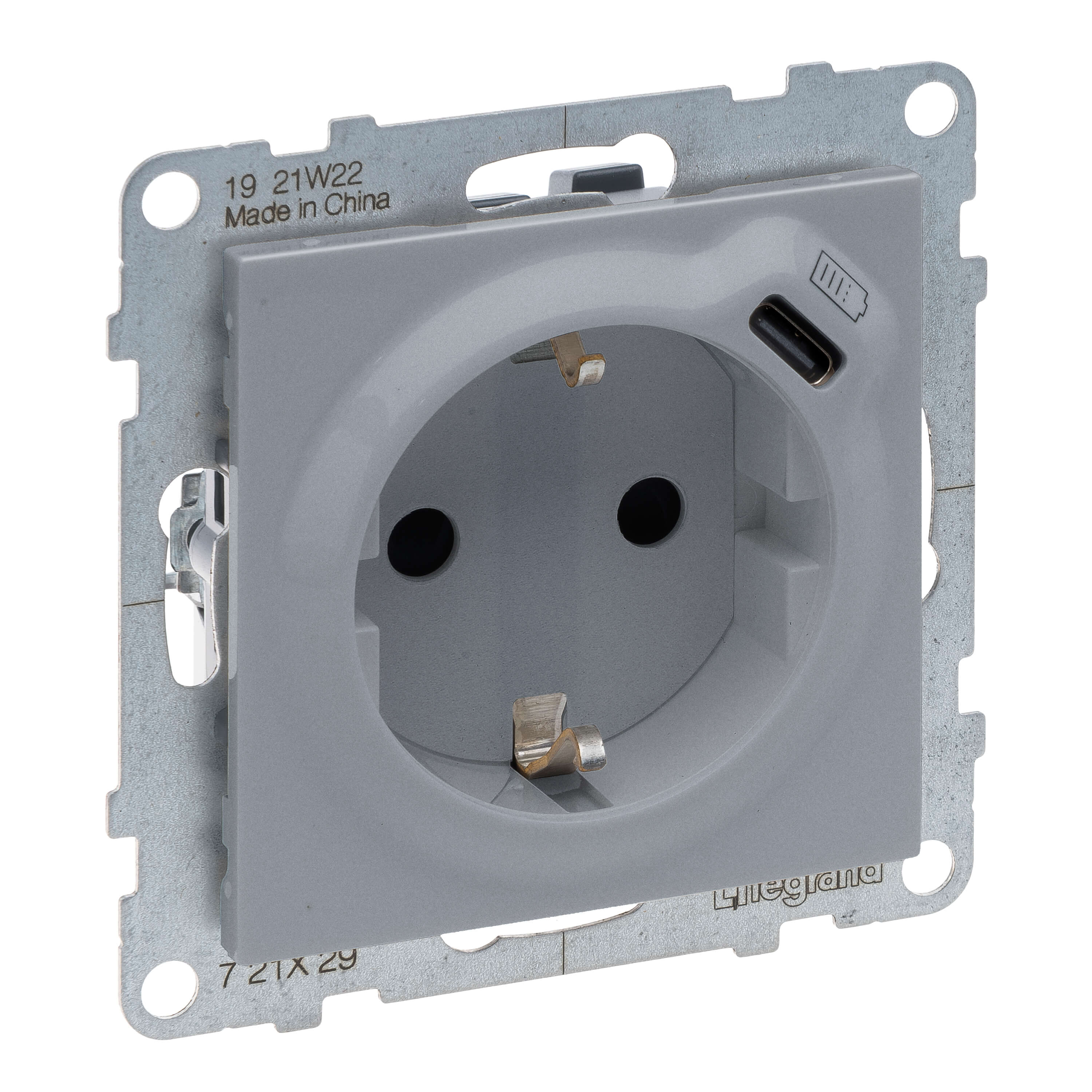Tomada conectada - 2P+T tipo Schuko, Alumínio